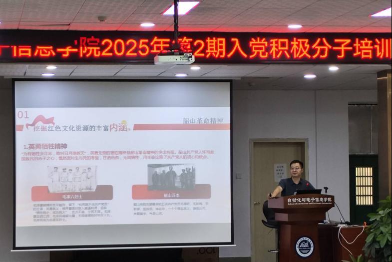 第 2 期入党积极分子培训第四次专题培训在工科楼阶梯教室举行,院团委书记文林波以“用好湖南红色文化资源,助力新时代青年坚定理想信念”为题做专题讲座。