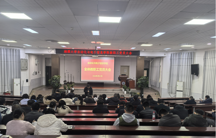 2026年第一次全体教职工党员大会在工科楼阶梯教室召开,院党委书记王广林主持,全体教职工党员参加。